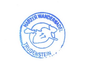 Wieder ein wenig zu Kräften gekommen, begeben wir uns auf die Abfahrt. Dabei bremsen wir in Intervallen, um die Bremsklötze nicht heißlaufen zu lassen. Mittlerweile ist die Straße mit Berggästen gefüllt und wir müssen vorsichtig an ihnen vorbeifahren, um nicht mit einem Kleinkind oder freilaufenden Hund zu kollidieren. Mehrmals fährt mit hoher Geschwindigkeit eine Gruppe Mountainbike-Fahrer an uns vorbei, zum Glück passiert durch ihr rücksichtsloses Verhalten kein Unfall. Einige Kilometer später erreichen wir eine Gabelung, an der wir zur Fortsetzung unserer Route links abbiegen. Damit verlassen wir auch die asphaltierte Straße und fahren auf einen schmalen Schotterweg. Wir bewegen uns langsam, weil die relativ großen Schottersteine keinen festen Untergrund bilden und unsere Laufräder etwas hin- und herschubsen. Doch mit ein wenig Balancieren ist die Fahrt kein Problem. Hoffentlich hält unsere Bereifung den scharfen Gesteinskanten stand. Auch auf diesem Abschnitt werden wir mehrfach von schnell fahrenden Mountainbike-Fahrern überholt. Zum Glück befinden sich auf dieser Strecke nur wenige Fußgänger, die gut ausweichen können. Auch diese Strecke führt uns wieder durch den Brockenwald. Ein Stück werden wir von einem romantisch kleinen Bachlauf begleitet. Das wenige Licht, dass der dichte Wald durchlässt, bricht sich zwischen den Zweigen und lässt alles in einem lieblichen Ambiente erscheinen. Die konzentrierte Abfahrt lässt uns die schöne Umgebung mit nur wenigen Blicken würdigen. Zum Aussichtspunkt Trudenstein sind es noch 700 m, kündigt uns ein Hinweisschilder an. Als wir dem Aussichtspunkt näherkommen, müssen wir trotzdem langsam fahren, da er etwas versteckt zwischen Bäumen liegt. Der Aussichtspunkt Trudenstein besteht aus großen aufeinandergetürmten Granitfelsen. An ihnen sind Metallleitern und Geländer angebracht, die einem sicher den Aufstieg zum obersten Punkt ermöglichen. Oben angekommen bietet sich uns ein weiter, schöner Blick über die Harzlandschaft. Die Fernsicht ist von hier aus sogar besser als vom Brockengipfel. Ähnlich den Stempelstellen am Jakobsweg wurde auf hier eine Stelle eingerichtet. Offensichtlich bringt es den Gästen Spaß, die Besichtigungsstationen in einem Pass zu sammeln. Ich mache mir einen Druck zur Erinnerung auf ein Stück Papier und fotografiere die imposante Gesteinsformation.